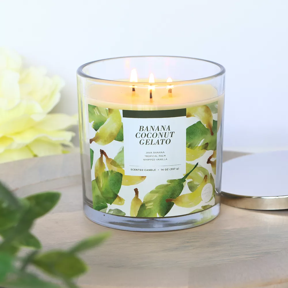 This Sonoma Goods For Life Banana Coconut Gelato 14-oz. candle jar will bring summertime to your home.